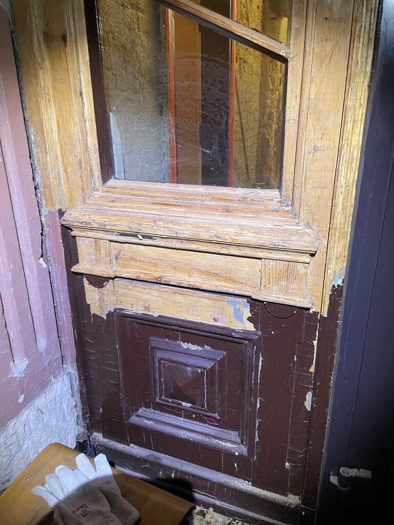 Poniżej kilka etapów przykładowej renowacji starych drewnianych drzwi.